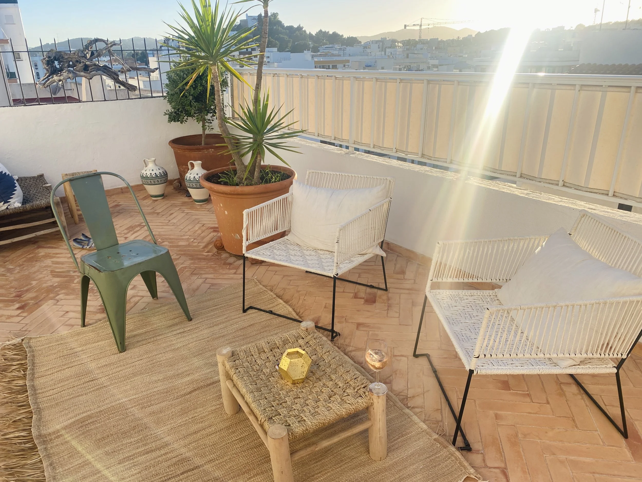 Übernahme des kompletten Interior Designs Innen und Aussen inklusive Steuerung aller Schreiner-, Maler- und Fliesenarbeiten eines 4-Zimmer Rooftop Appartments auf Ibiza nach Kernsarnierung.